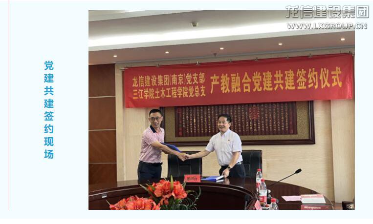 最后,王希宾书记、费永新副书记代表校企双方进行了校企党建共建合作协议的签约。此次签约,标志着三江学院土木工程学院与关于龙信在党建共建合作办学、技术合作等方面迈出了坚实的一步。